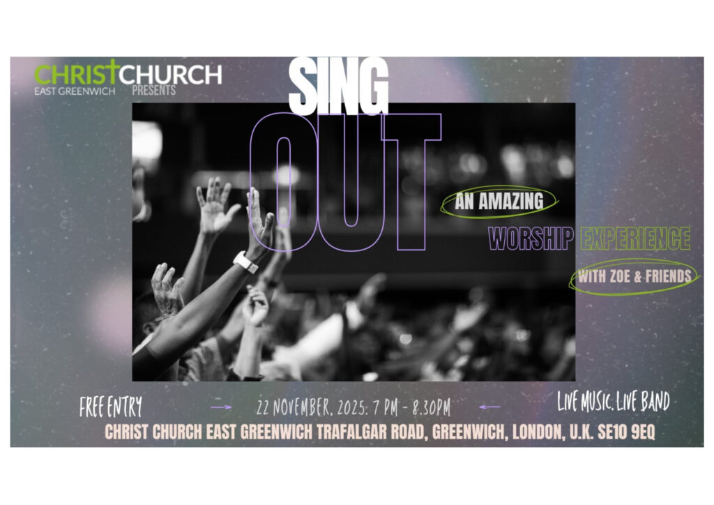 Join us for SING OUT, an evening of heartfelt worship and uplifting praise led by Zoe at Christ Church East Greenwich.