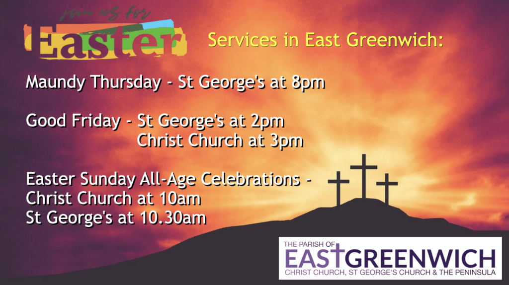 Join us at Christ Church East Greenwich and St George’s Westcombe Park this Easter season ✝️